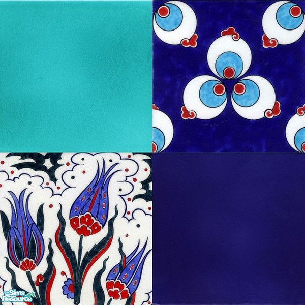 Sims 2 — Blue Ceramic Tiles by ninalay — 4 traditional handmade Turkish ceramic tiles