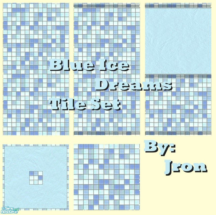 A set of three walls and two floors, featuring tiles in lovely and cooling shades of blue and frost.