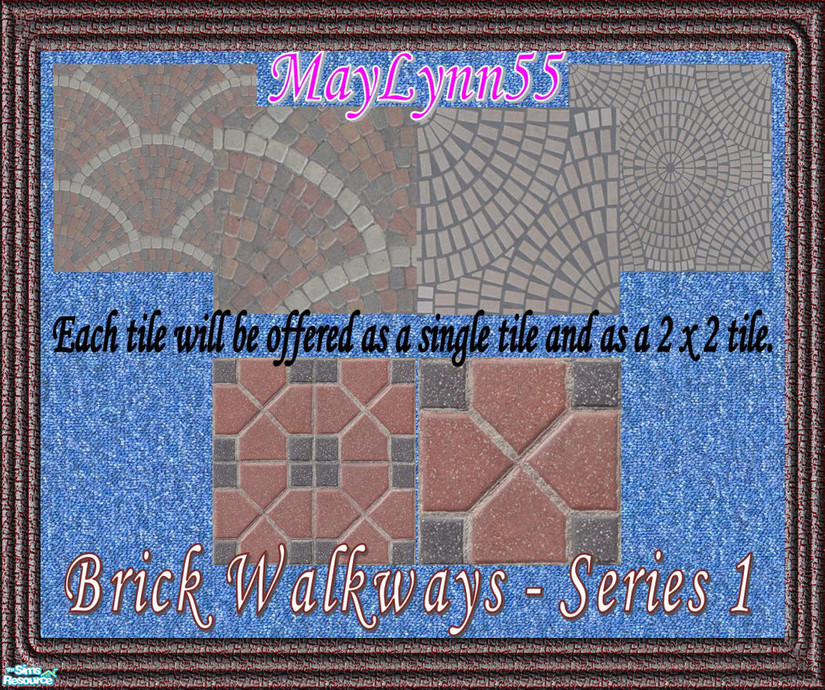 These floors are all various brick walkways. I have made them all in 1 square and 2x2 square formats. I hope you enjoy them. :)
