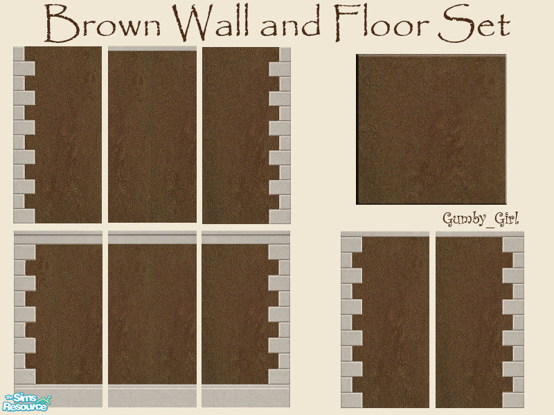A set of 8 chocolate brown stucco walls with grey coping. 1 matching brown floor tile. Perfect for your sims homes, community lots or a new hotel