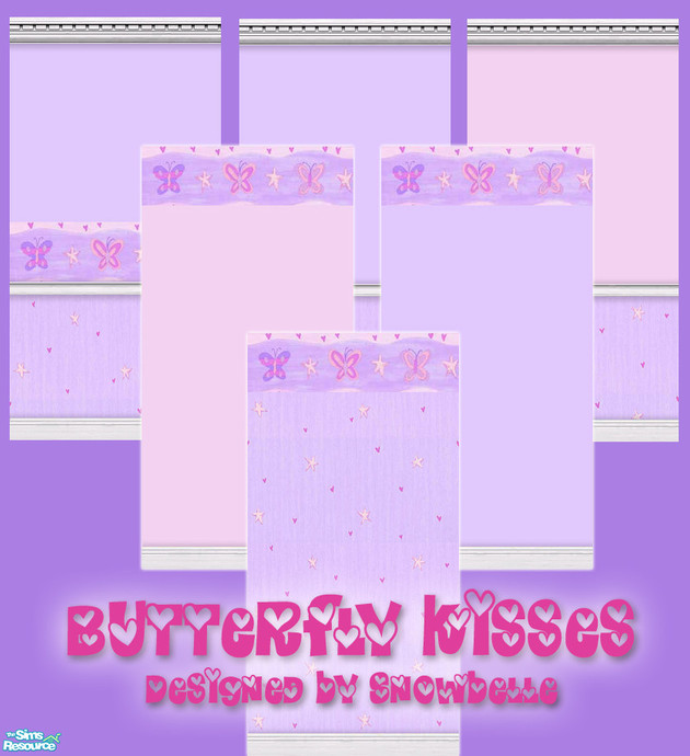Set of six walls featuring a lilac and pink butterfly border on both paint and paper. Thanks to Cailca for wallpaper templates.