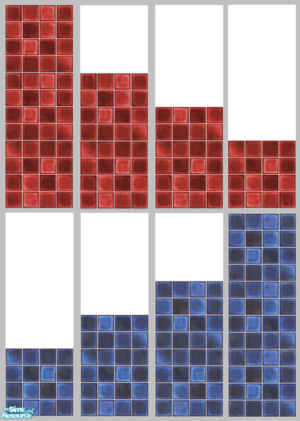 So here are 4 turquoise and 4 red walls to mix and match with the Maxis ceramic floor tiles.