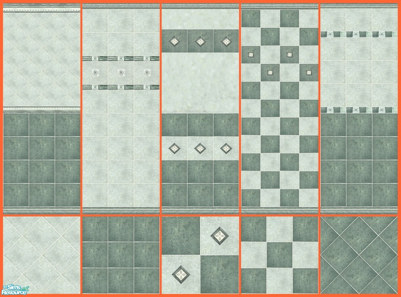 After Obidos (red) and Estoril (blue), here's a set of 5 walls and 5 floors in bottle green tiles. Mix them up as you prefer and don't forget to rate. ~TSRAA~
