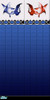 Blue and Red Koi pose over waves atop an ocean of tile in blue, pale blue and white varieties.