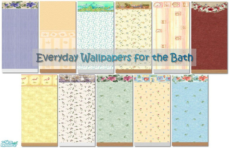 A set of cute wallpapers for your sims' bathrooms in 11 styles and 2 trim colors. All are seamless. Enjoy!