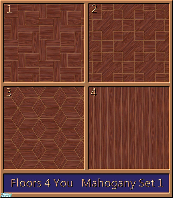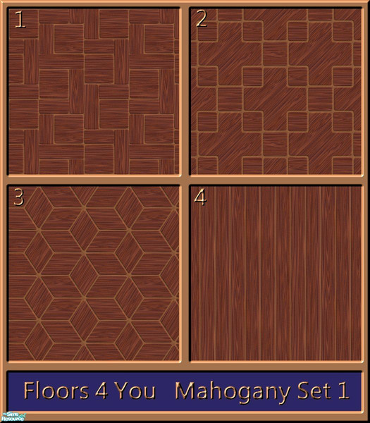 This is the first set in Mahogany Wood in my range of wooden floor tiles called \'Floors 4 You\'. There will be 4 sets in Mahogany Wood. This set contains 4 various patterns and styles to suit all. All tiles are seamless.