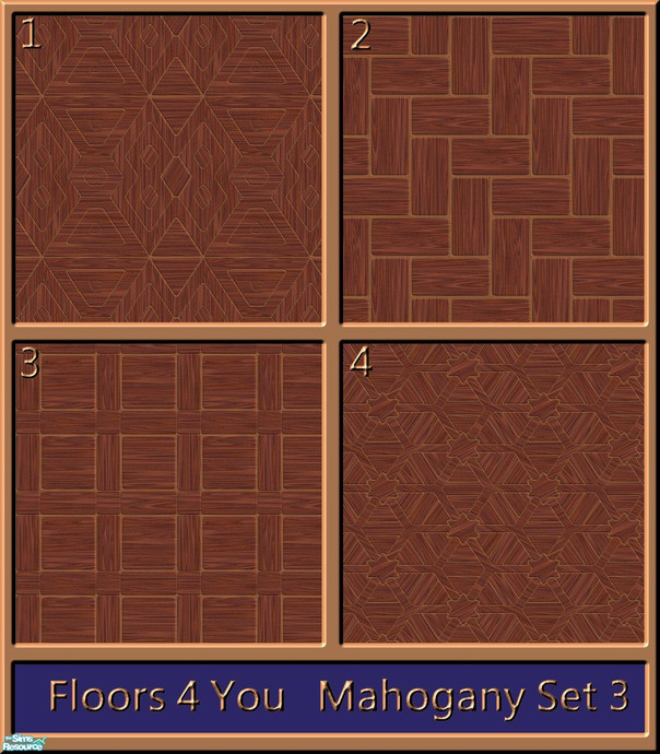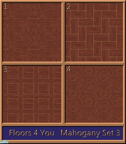 This is the third set in Mahogany Wood in my range of wooden floor tiles called \'Floors 4 You\'. There will be 4 sets in Mahogany Wood. This set contains 4 various patterns and styles to suit all. All tiles are seamless
