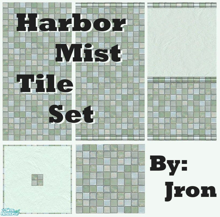 A set of three tile walls and two floors, in cool, sea-watery colored tiles, for your Sim\'s bathroom Or kitchen.