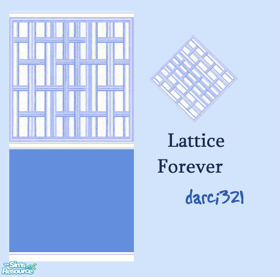 This set includes one wall and floor tile in the lattice pattern with the color of blue as a focal point of color.