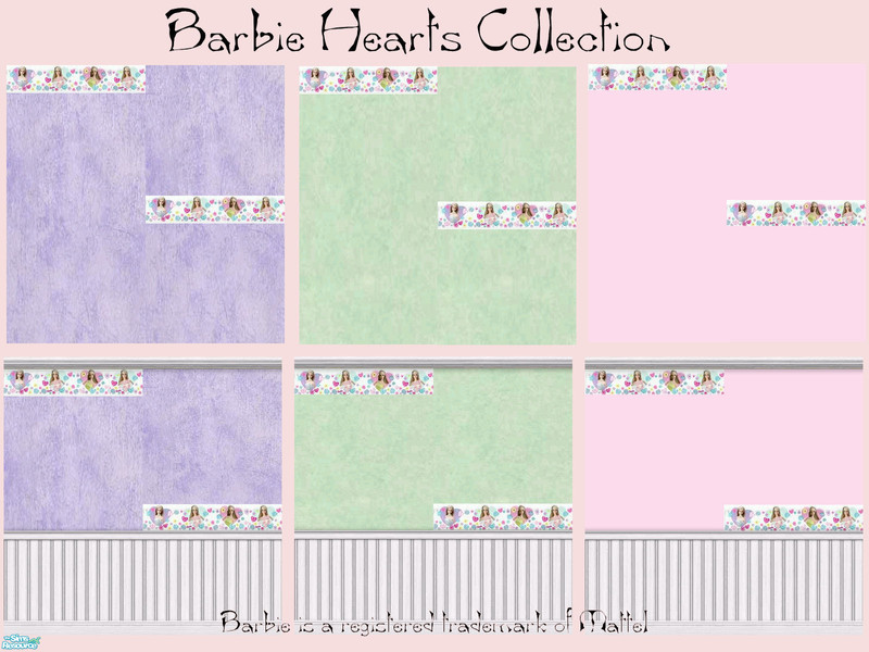 Barbie Hearts Collection contains 12 walls and 3 floors..Floors not shown. Barbie is a registered trademark of Mattel.