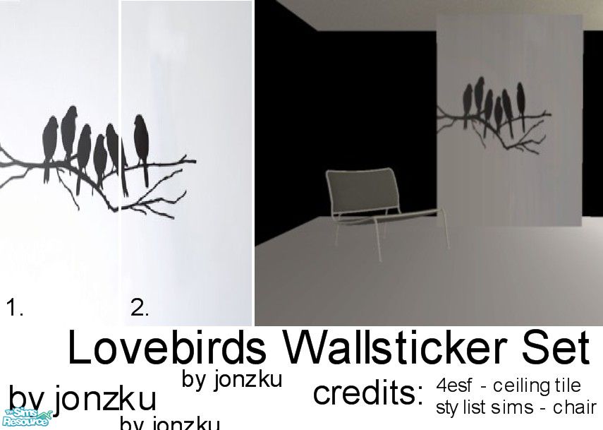 Sims 2 — Lovebirds Wallsticker Set by jonzku — This set contains 2 wallpapers. Use them as a mural. Modern black &