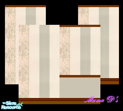 A nice strip in a pale sage green and cream. With a dark brown top, bottom, double, and chair rail molding.