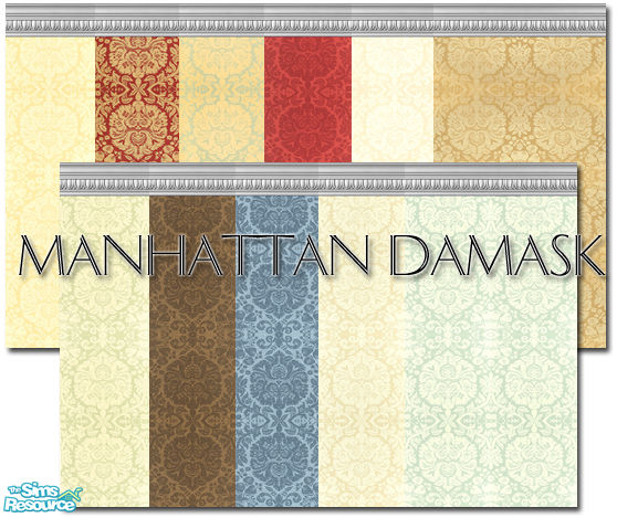 Sims 2 — Manhattan_Damask by Cynic08 — A set of 11 different wallpapers for your Sim\'s home. Colors include: Aqua,