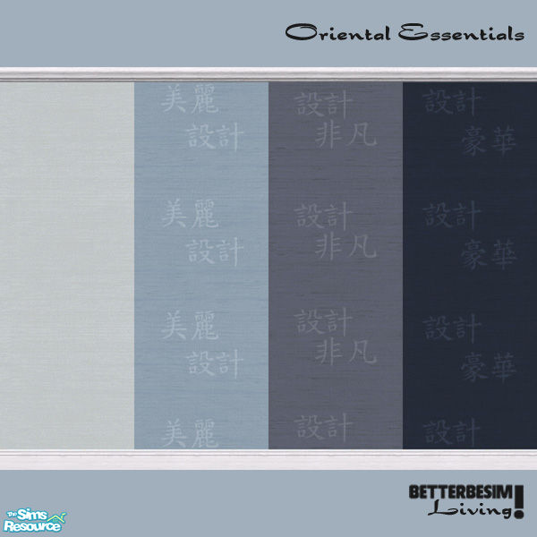 Handmade silk wallcovering in the colors Pale grey, Lightblue, Bluegrey and Darkblue. The blue color versions have a Kanji writing pattern. Created by BetterbeSim. Do not change and/or re-distribute without permission.
