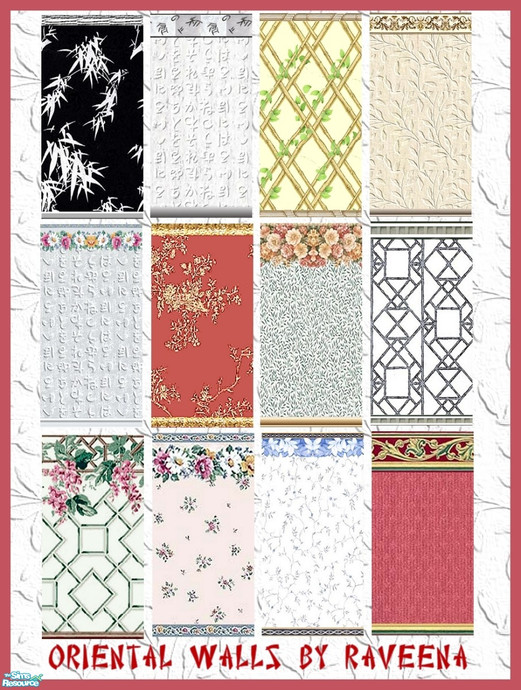 Colorful, unusual and just plain pretty is a good description for these typical Oriental walls. All walls tile perfectly.