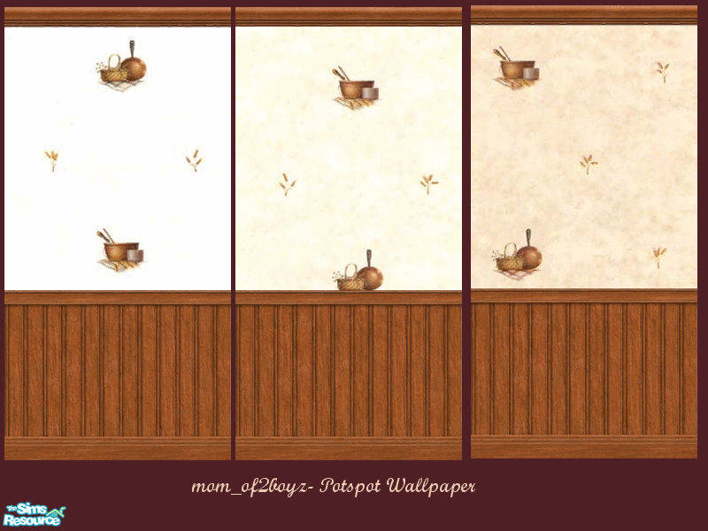 A set of three new Kichen wallpapers, decorated with pots and baskets.