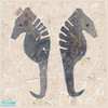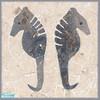 This is a set of Marble floor tile. It contains 4 tiles, two with a seahorse design, and two plain to mix and match. One set is outlined in blue, and the other in a pink/beige color.