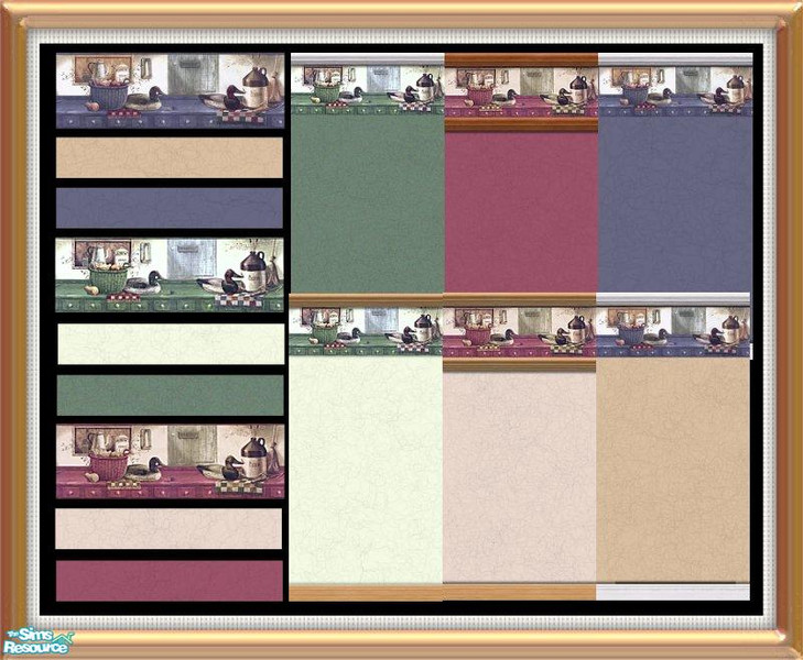 Wallpaper decorated with a boarder of ducks. Perfect for country kitchens or any room that needs the type of enhancement only ducks can bring.