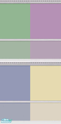 This is my favourite maxis wall I use it so often in my game but I hate the picture rails so I have removed them and re painted in four colours yellow, purple, blue and green. Enjoy x lilloz