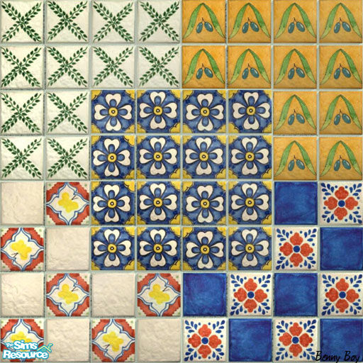 Collection A of 2 spanish tile sets. These colorful floor tiles will brighten up any house! Enjoy.