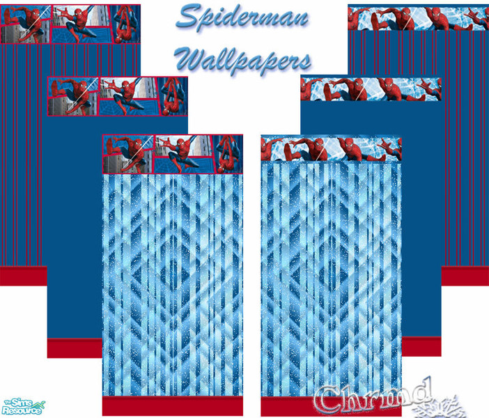 A set of 6 spiderman wallpapers for your child\'s bedroom. A matching set of carpets are also available.