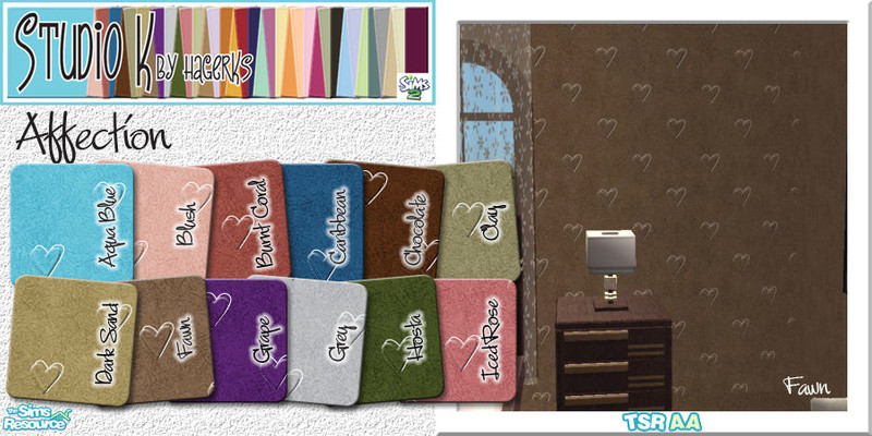 1-12 of 36 colors. Cute heart design on a sponge texture background. Category: Wallpaper. Price: 11 simoleons. Coordinates with Studio K Affection Texture and Studio K carpet collections and linoleum lines. Enjoy! and have an AMAZING day!
