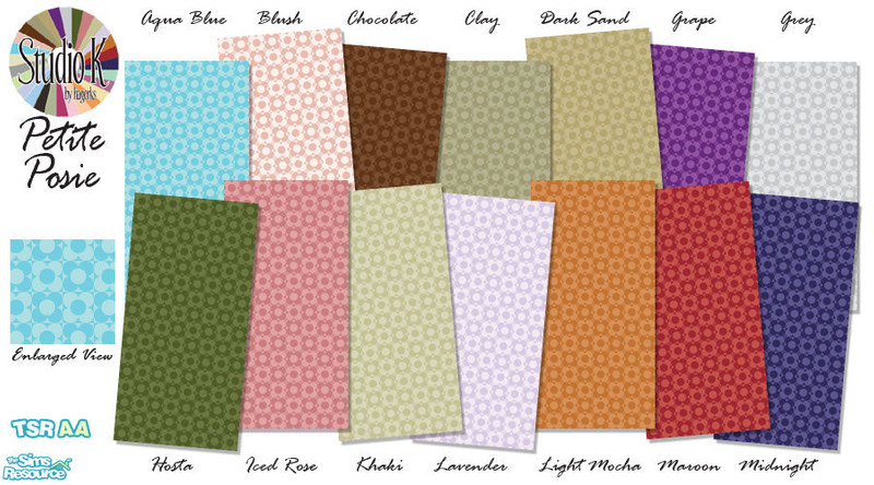 1-14 of 28 colors. Can be found under Wallpapers. Coordinates with Studio K Solids (paint), and all Studio K carpet collections and linoleum lines. Please visit my blog to see Petite Posie in Clay and Peony. Enjoy! and have an AMAZING day!