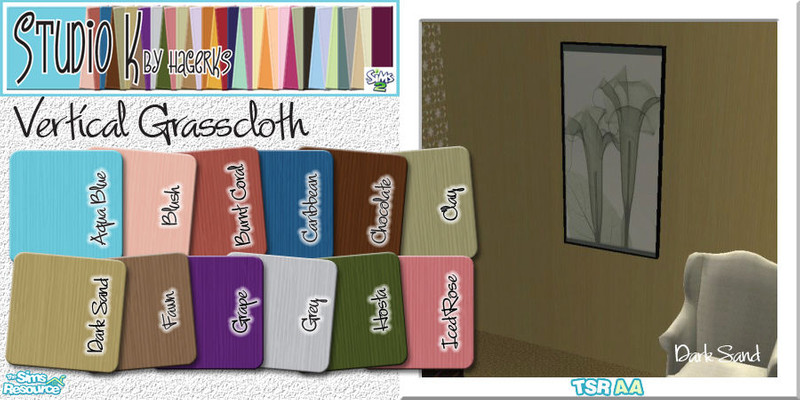 Sims 2 — Studio K Vertical Grasscloth_01 by StudioKhagerks — 1-12 of 36 colors. A subtle vertical grasscloth texture.