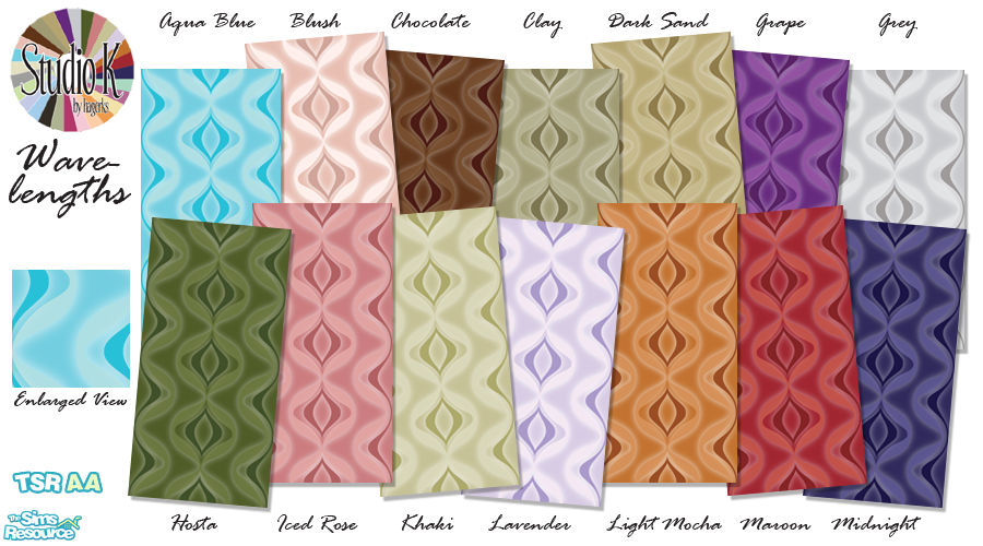 1-14 of 28 colors. Can be found under Wallpapers. Coordinates with Studio K Solids (paint), and all Studio K carpet collections and linoleum lines. Please visit my blog to see Wavelengths in Hosta and Peach. Enjoy! and have an AMAZING day!