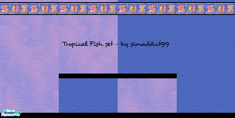 Faux finished plaster walls in two-tone purple and/or blue accented with a vibrant colored tropical fish border and black trim. This would look great with plain black floors.