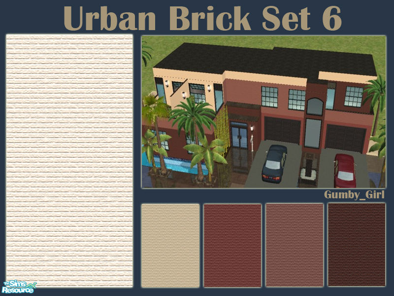 A set of 5 brick walls for your home or office. Colours include white, cream, dusty pink,light burgandy and red brown . Co-ordinates with Urban Stucco Set 6, Urban Paint Set 6 and Urban Siding Set 6. Floors and fences coming soon. Cost $0 - great for sims wanting to decorate on a budget.