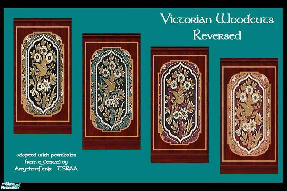 In honor of c_literati's new Featured Artist status (and with her permission), here are her beautiful Victorian Woodcut walls reversed so that they may flank a door or fireplace. (Don't forget to download her set too!) TSRAA