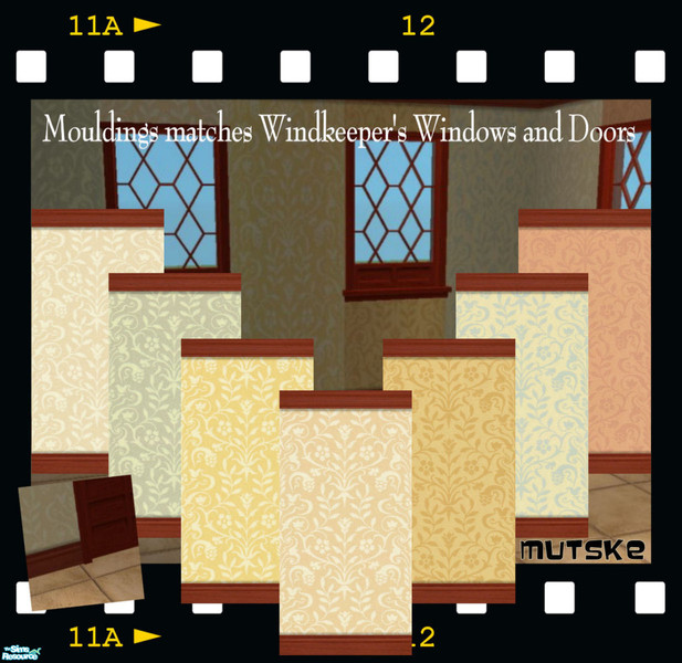 Wallpaper with dark moulding. Matches the windows and doors from Windkeeper.
