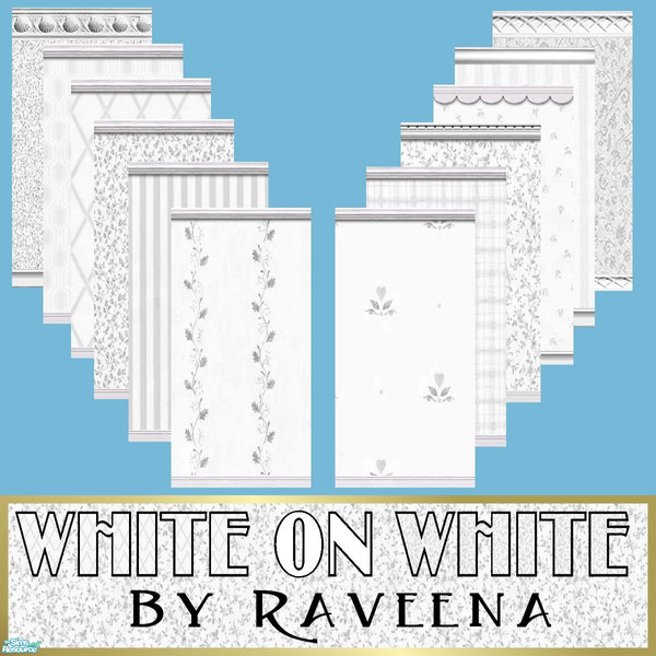 Brighten up your Sims home with these white on white walls. So the individual images show up better on TSR I added a blue border. The border will not be on the wall you download.
