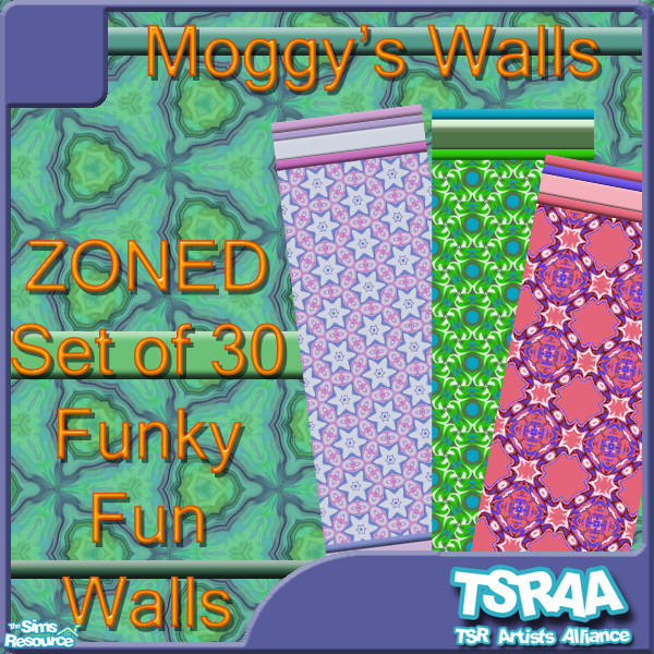 Zoned! A fun set of 30 walls with zany colours, funky patterns and coloured cornices for top and bottom. TSRAA you can use as you wish =^.^= with love from your Kitten!
