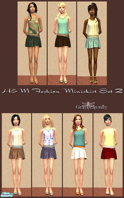Second part of a two part set. This set includes 7 recolors of the H&M Fashion Miniskirt for female teens.