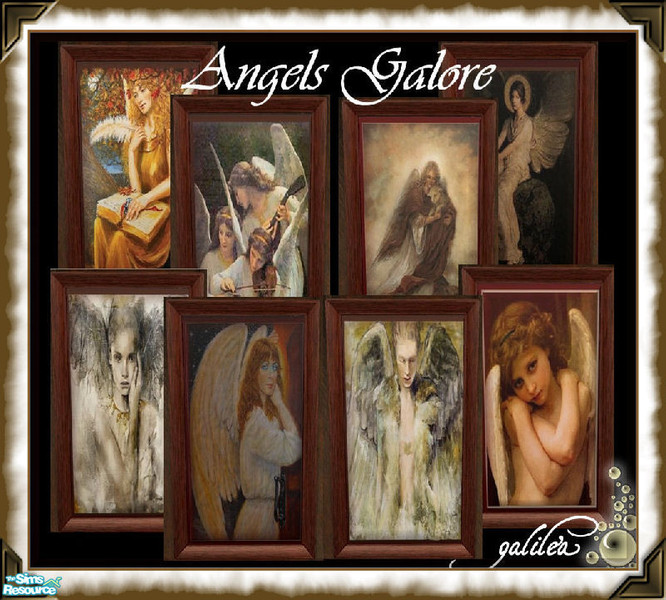 I very nice selection of angel portraits for those of you who are fond of them. Works of art are by various artists, so there are several different styles to choose from. Paintings are recolors of 'Sent To Bed Without Dinner'. Nightlife EP required.