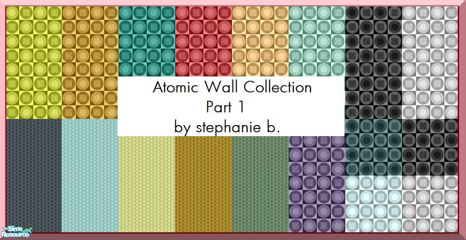 This set of 16 walls is 1 of 2 sets created to accent the Atomic furniture in the game. There are 35 walls total in the Atomic Collection. Be sure to download both parts and the Atomic Floors. Enjoy!