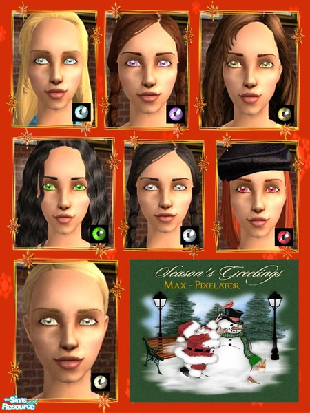 Ho! Ho! Ho! Have some festive fun with these seven fun colours of sparkly eyes for your Sims Christmas parties! Available in the colours of: Gold, Silver Ice, Holly, Blue Ice, Berry, Lavender and Champagne.