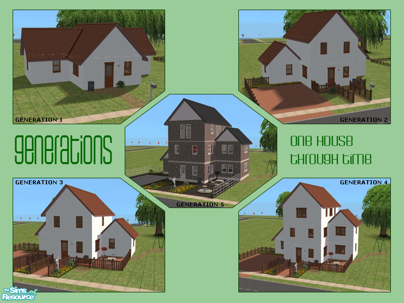 Based on LadyGaia's building challenge. This set includes all 5 stages of the one house going through time and budget. For more info, search for the Generation thread in the building forums.