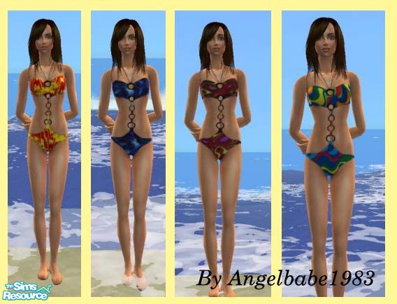 Here are another set of Swimsuits. There's not that much to it - literally. The middle of this suit is joined together with rings. Comes in 4 different textures for your Female Adult Sims. Based on a Swimsuit by Nefre K, credit must go to Nefre K. Enjoy!