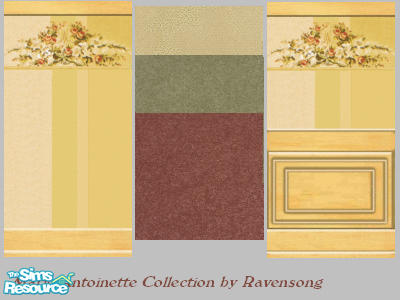 Florals inspired by Queen Marie Antoinette's bedchamber. The pattern graces her headboard at Versailles. I gave them an updated look for your Sims with three coordinated carpets.
