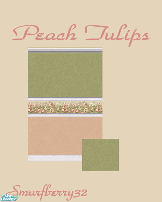 Pretty peach and green walls with peach tulip border.