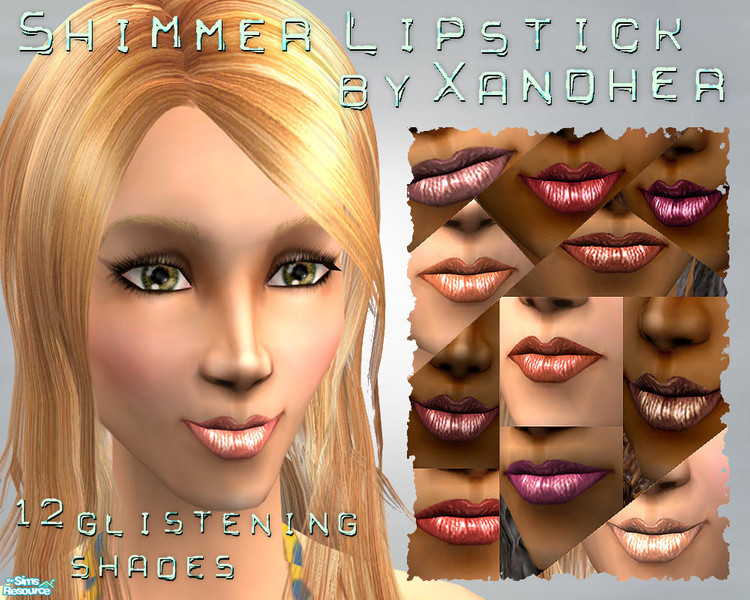 A set of 12 glistening lip colors for your Sim Ladies. This collection has something for any skintone!