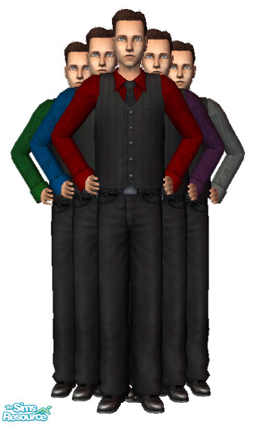 A set of five recolours of the Maxis shirt and vest outfit from Glamour Life Stuff, plus removal of the chain.