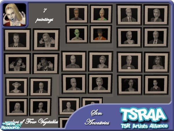 7 paintings of sims, recolors of Four Vegetables. TSRAA.