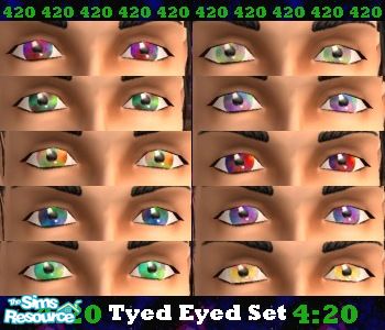 A 10 part Super Set of Tye Dyed Eyes. These are no ordinary Tye Dyed Eyes, these are Tyed Eyes. Various mixes in color and brightness, these eyes are sure to impress anyone who looks into them. - Agent 420