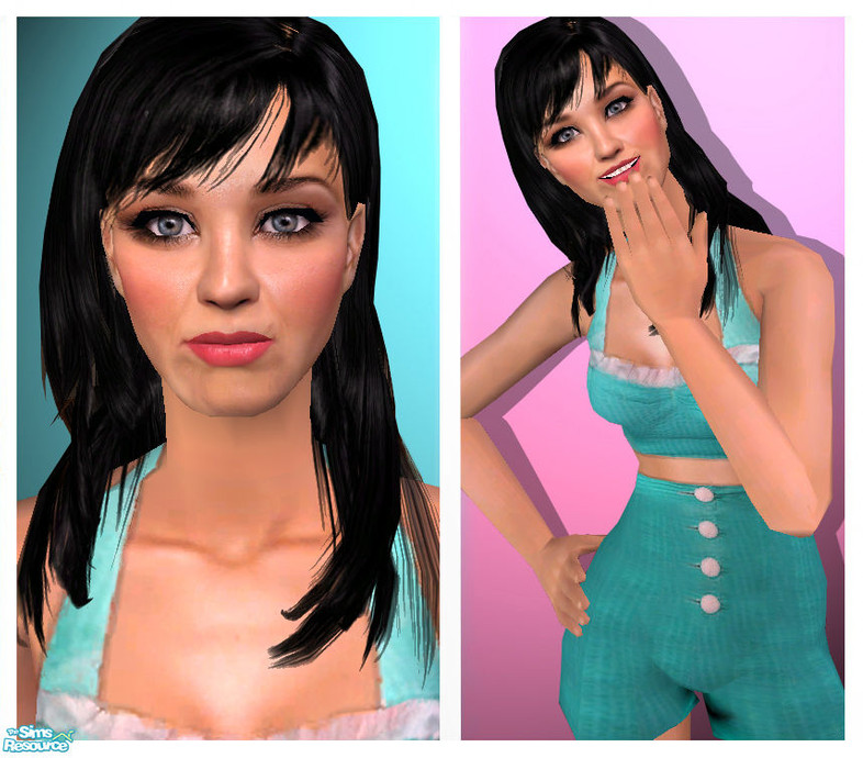 The famous poprock singer is known for her songs like \"I kissed a girl\"... She was born in 1984, California... Skintone by me based on @stefan\'s beach party skintone, eyes by thesimssi2, eyeliner by Barcelonista, clothes and hair are recoloured by me but you need the meshes. Thank you creators!!!