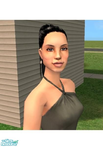 Angelina Jolie - Version 2. I re-structured her face a little bit from my previous uploaded version of her and of course, gave her a new hair-do with one of Big Bad Shar's wonderful meshes here at TSR! Enjoy! Credits: Hair Mesh/Color=Big Bad Shar, Eyes=Simssi2, eyeshadow=Lyran, Lipstick=Lola, Earrings=Nikki041498(mesh by Dr. Pixel)