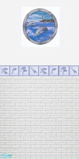 White Brick, with Dolphin Tiles & Dolphen Picture.